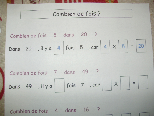 Dans le cadre du travail préparatoire à la division, j'ai voulu