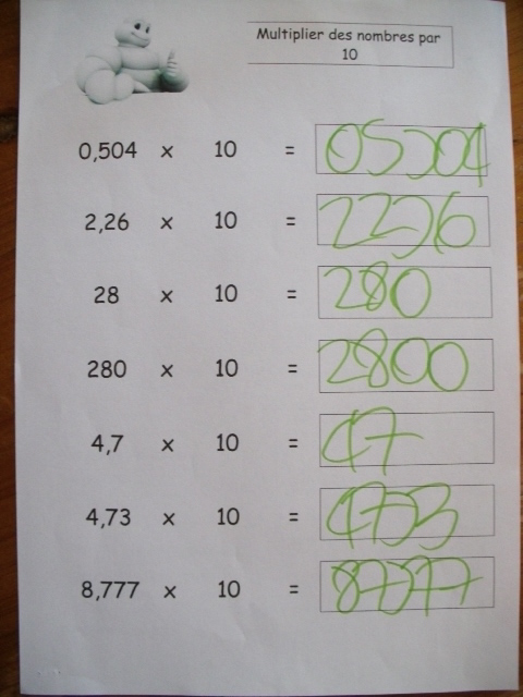 permet de réviser la multiplication (ou la division) par 10 (on rajoute