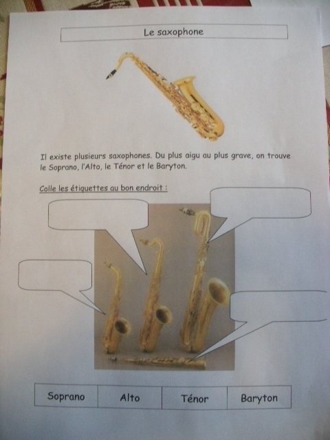 Fiche "les saxophones"