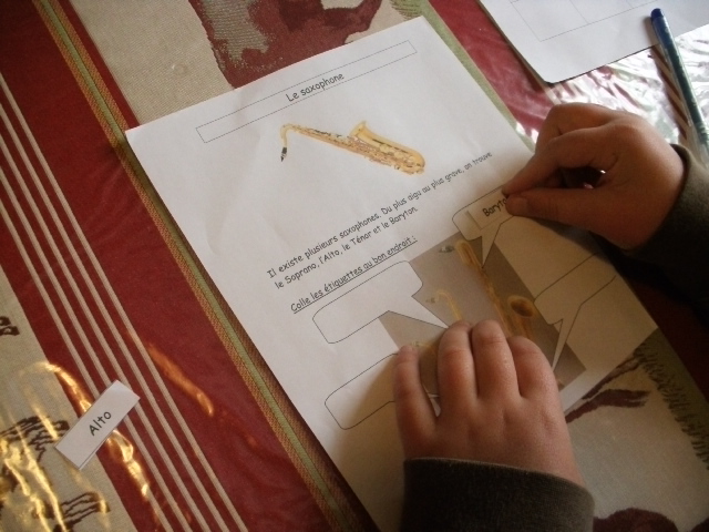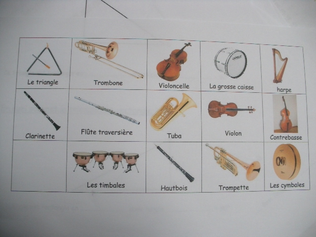 photos, pour être sure que l'enfant associe bien le nom de l'instrument