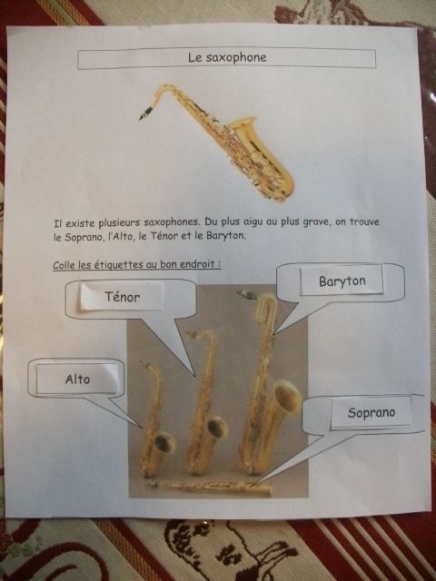 L'idée est de montrer à notre fils, qu'un même instrument connu de lui, ici le saxophone, existe sous différentes tonalités.