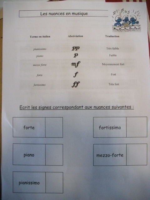 Fiche "les nuances en musique"