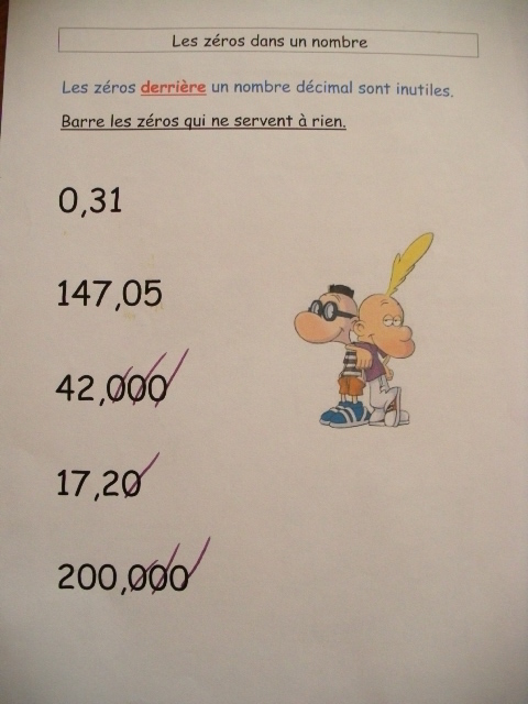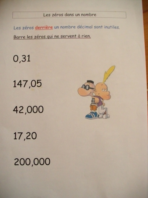 On entoure la virgule pour être sûr de pouvoir supprimer les zéros qui sont à la fin du nombre (ce n'est possible que pour les nombres décimaux) |