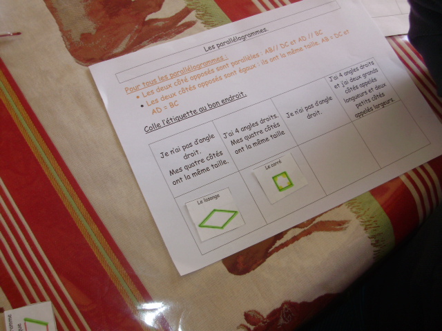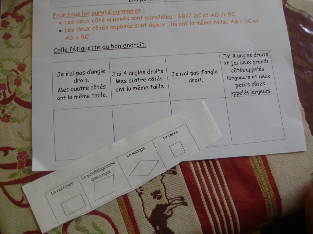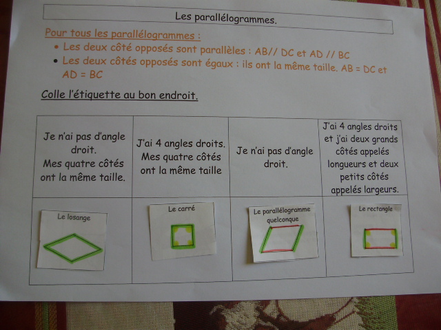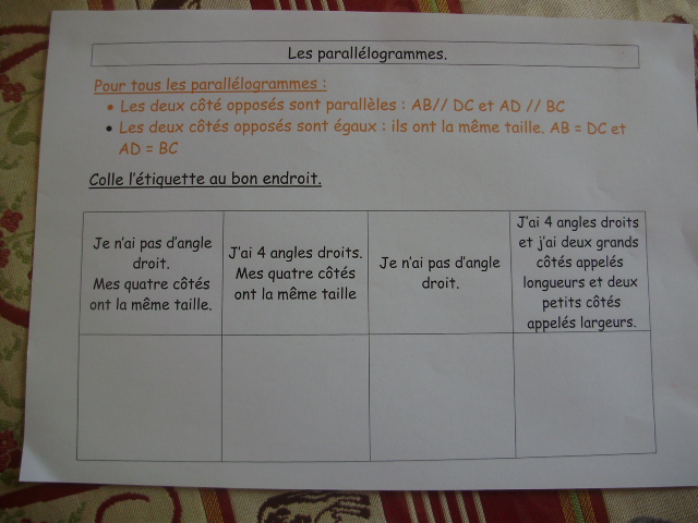 Fiches sur les parallèlogrammes- les étiquettes figures