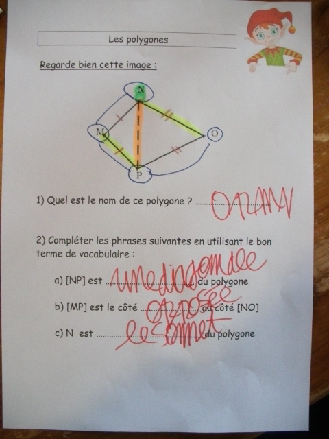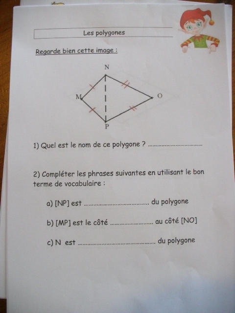 Dans le chapitre sur les polygones en sixième, l'enfant doit