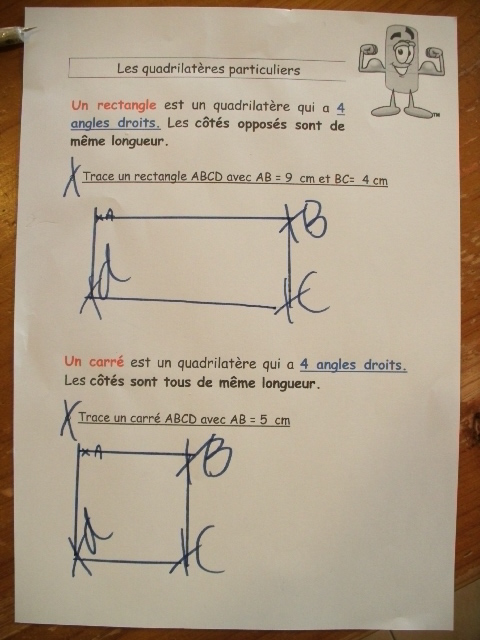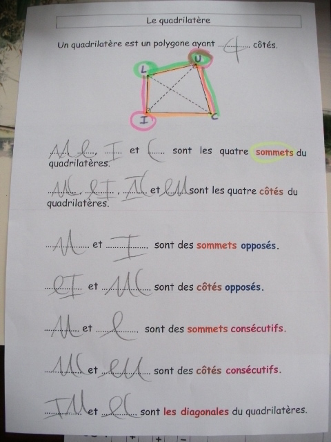 Cette série de fiches est plus spécialisée sur le vocabulaire du quadrilatère.