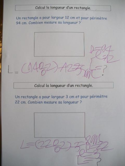 à l'inverse, de trouver la longueur ou la largeur, à partir du
