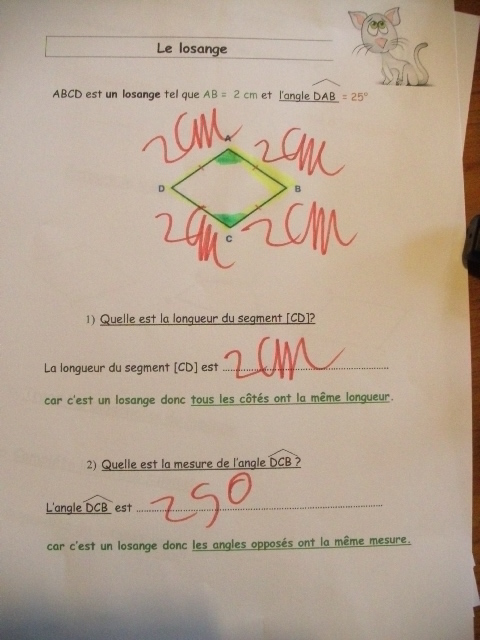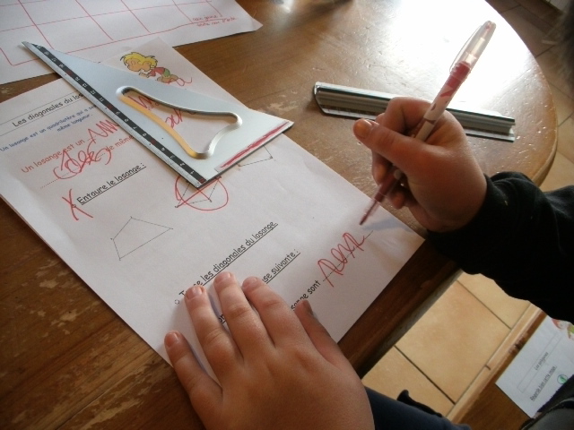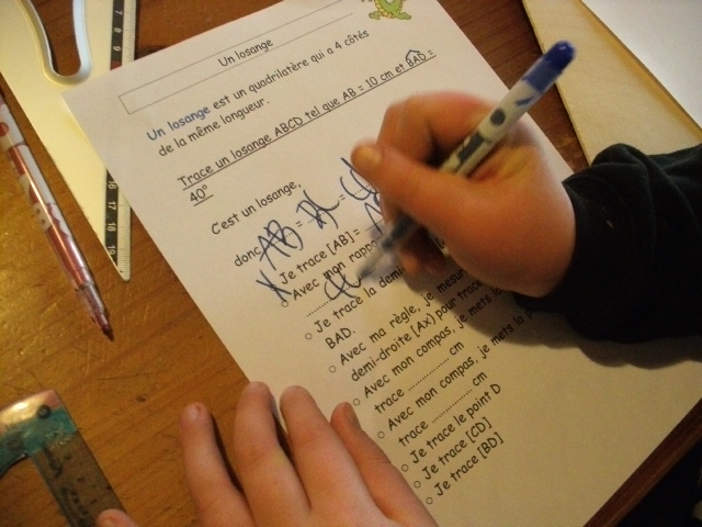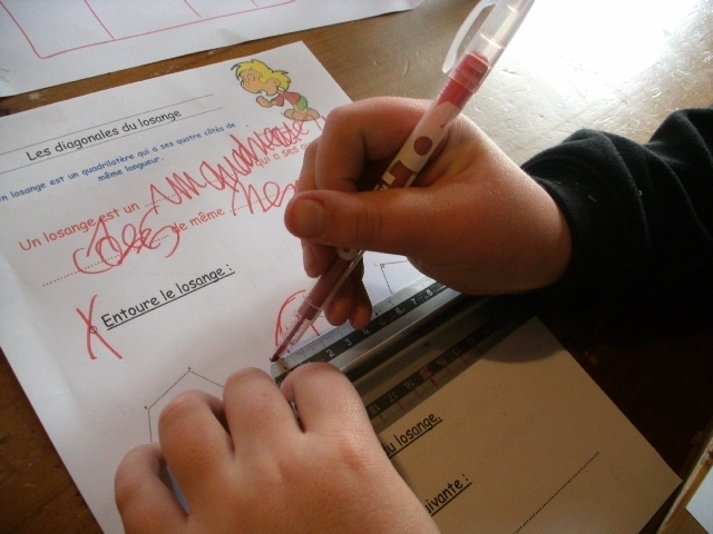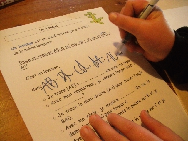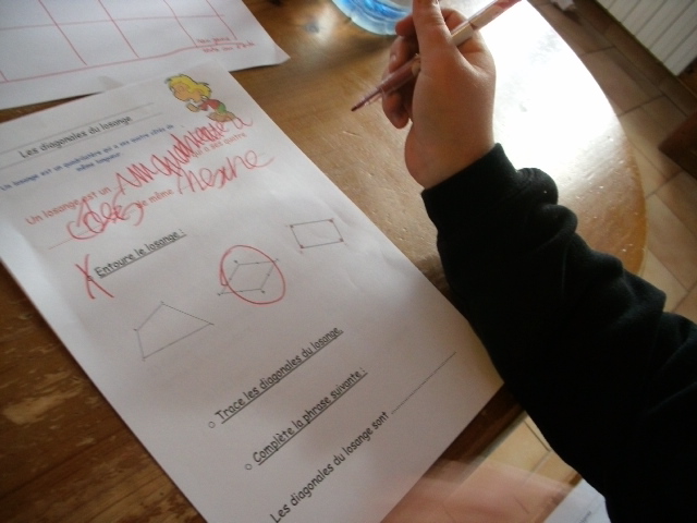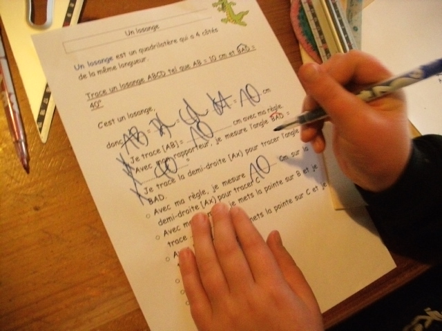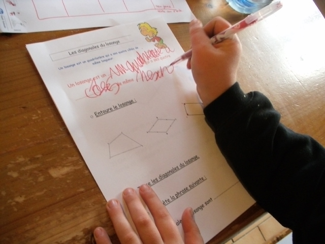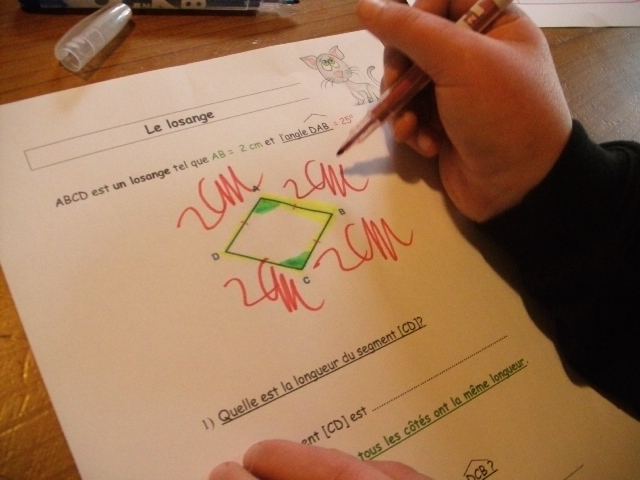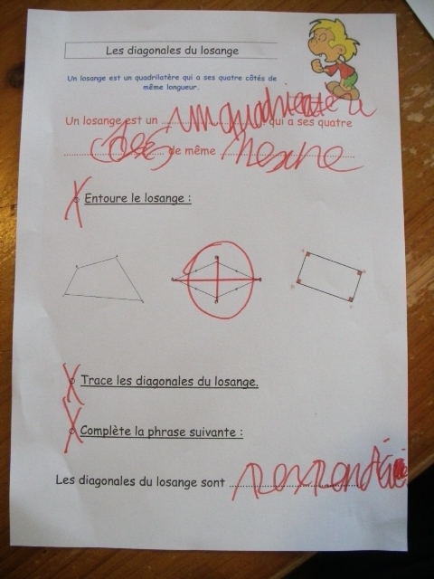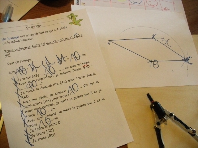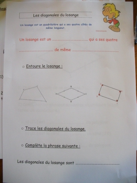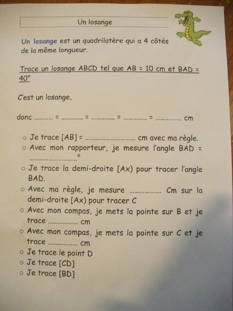 construction du losange. Quand il a réalisé une étape, l'enfant coche