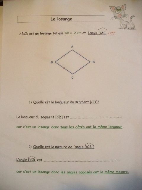 représentent les figures étudiées. On indique sur la figure du losange