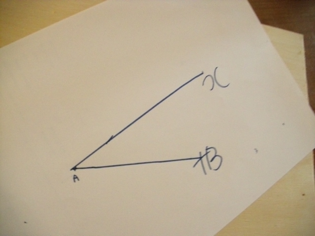 On mesure le second côté sur la demi-droite qui délimite l'angle. On positionne ainsi le sommet C