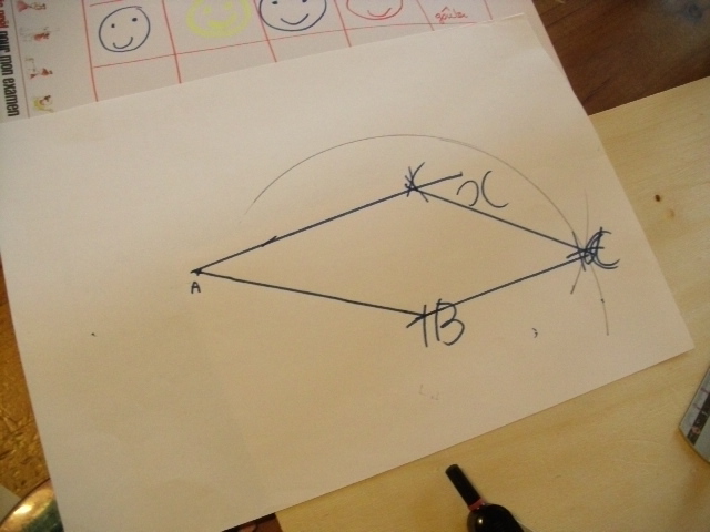 On se positionne sur le sommet C pour tracer l'autre arc de cercle.