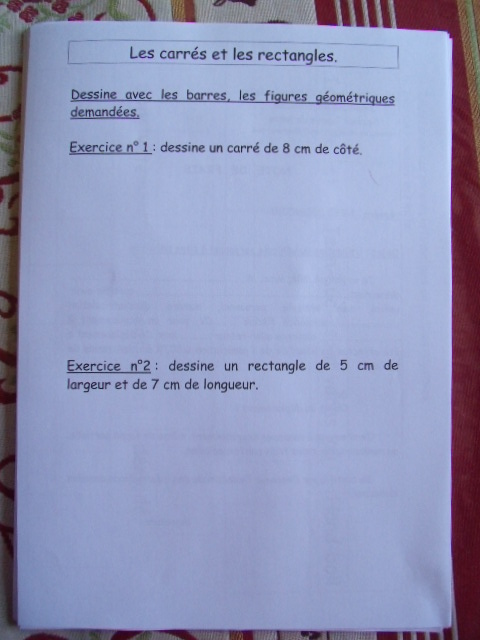 rectangle. Il faut au préalablement que l'enfant ait appris à appliquer