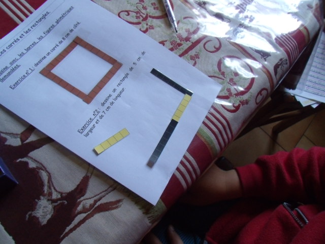 Puis, je demande à l'enfant de construire un carré et un rectangle lors