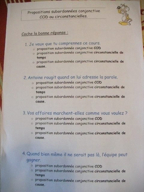 Fiches "subordonnées conjonctives COD ou circonstancielles. "