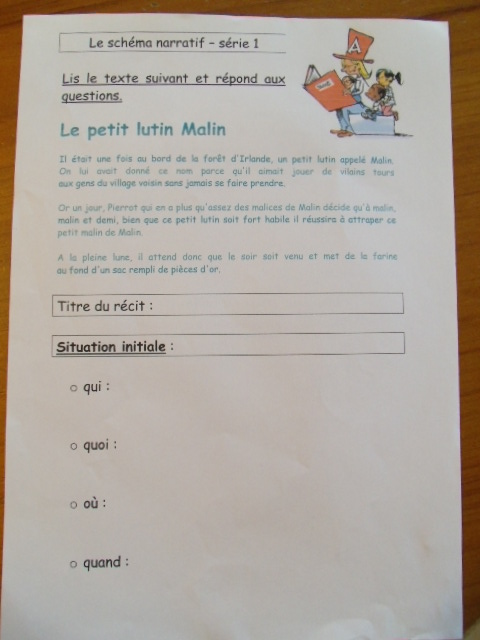 Fiche "étape 1 du schéma narratif"