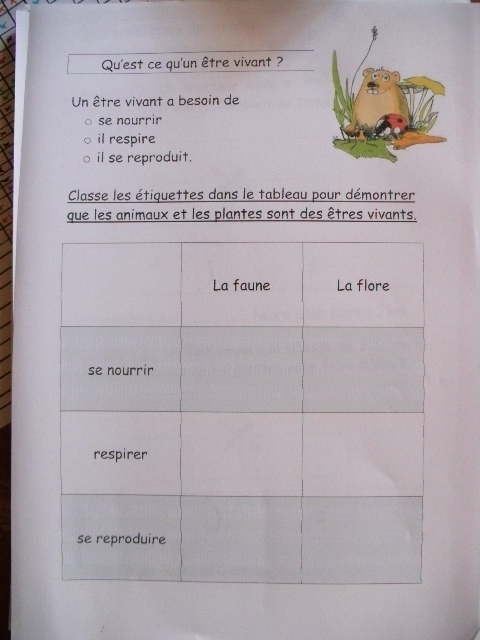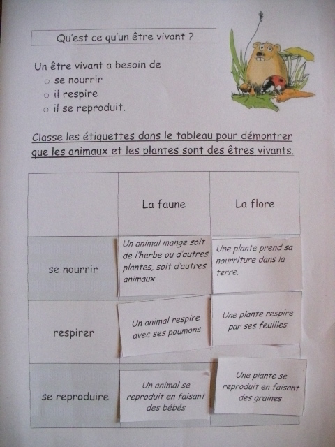 faune) des végétaux (= la flore). Le principe de ce travail est de