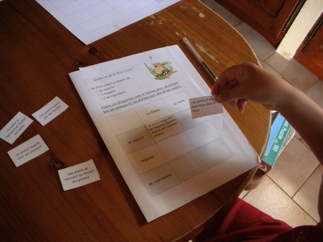J'ai donc créé un tableau à compléter avec des étiquettes. J'ai proposé