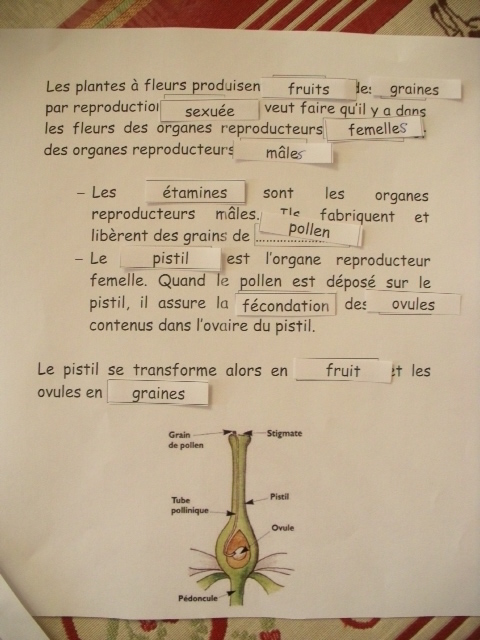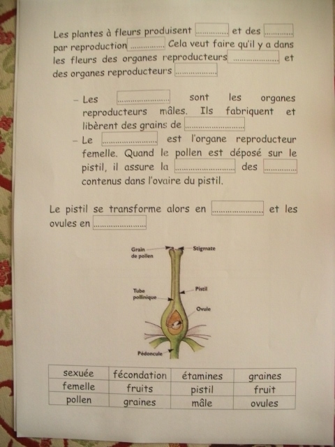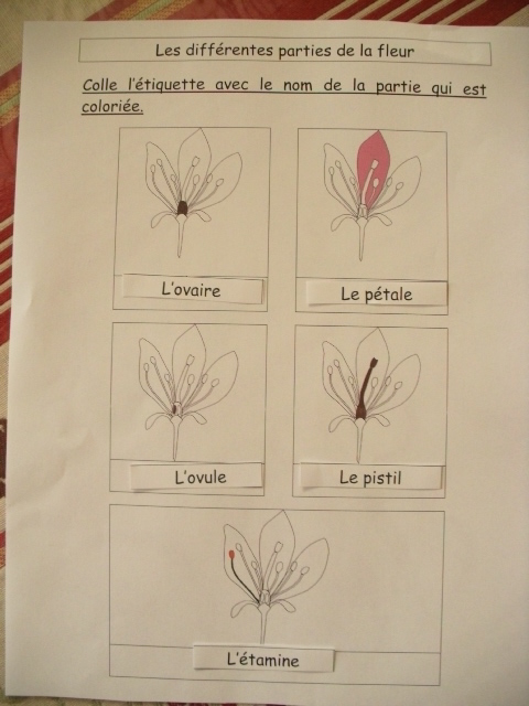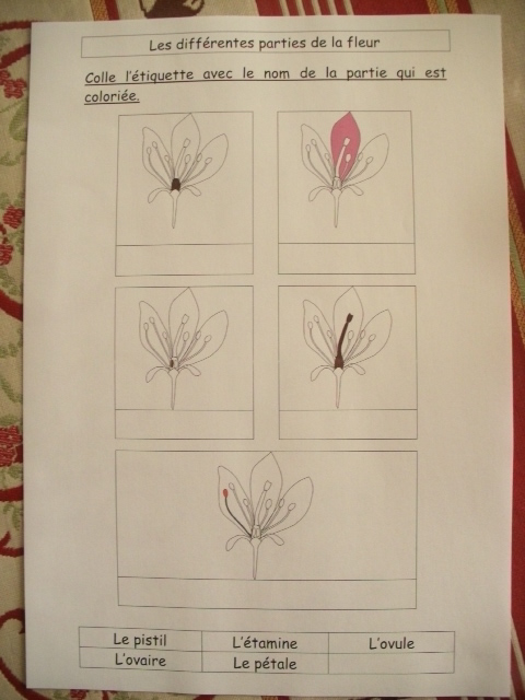 Repris par cette fiche de vocabulaire sur le rôle de chaque partie de la fleur.