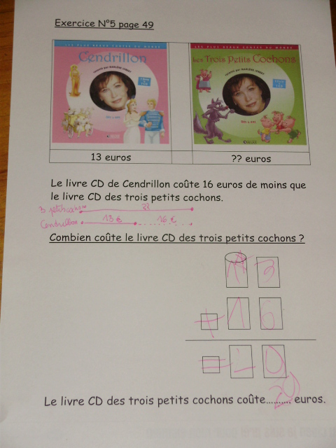 C'est ainsi, que nous avions à faire les exercices de maths, sur le livre, page 49.