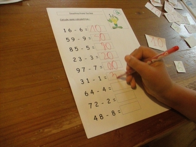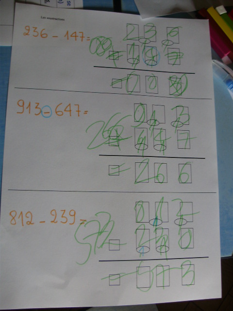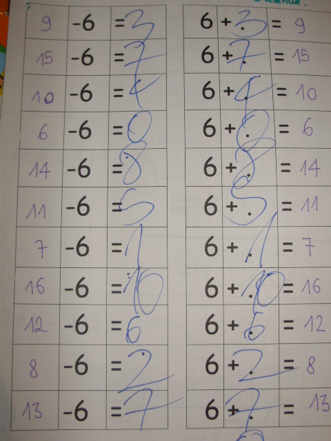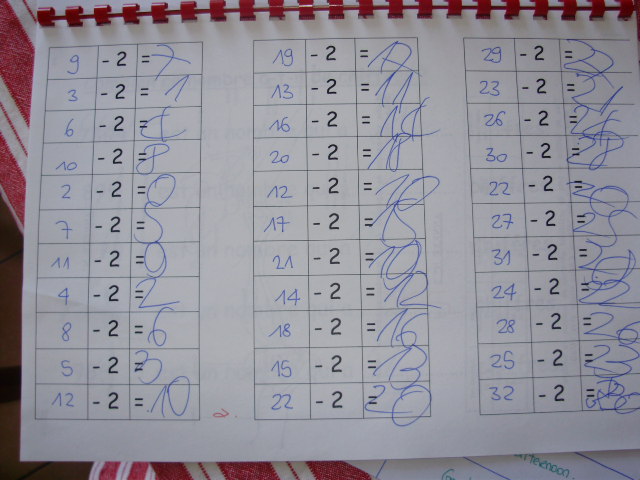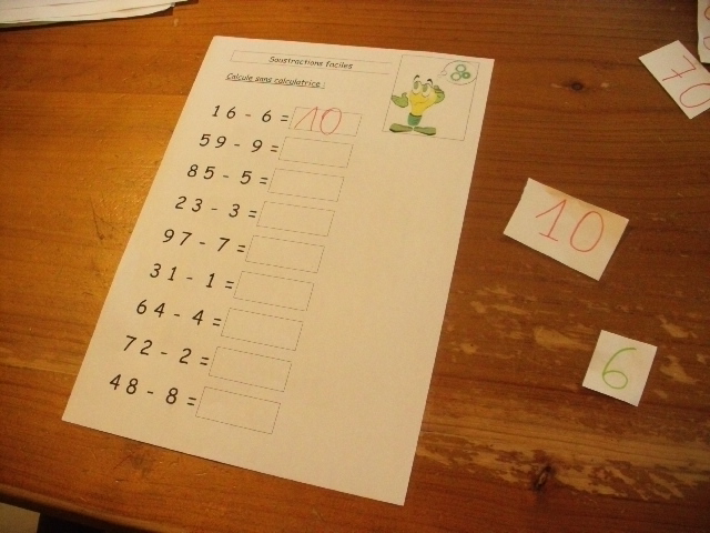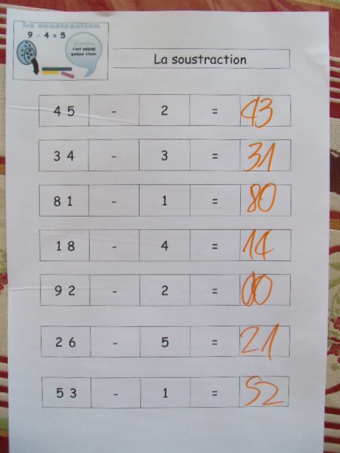 j'ai systématisé l'apprentissage des tables de soustractions, comme
