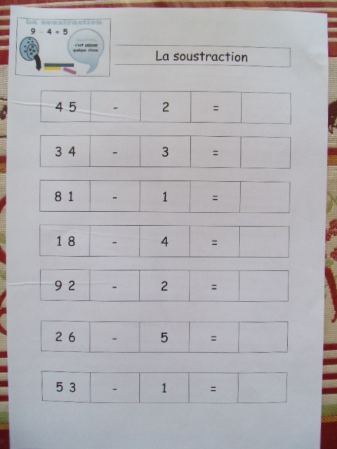 oeuvre une soustraction. Fiches sur la différenceformat wordformat pdf