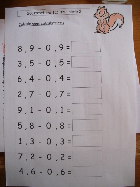 Soustraction facile à automatiser (calcul mental) - les décimaux :