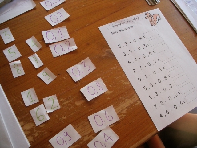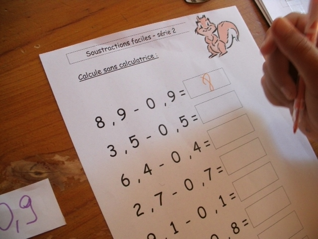 Comme pour les fiches ci-dessus, on utilise des étiquettes pour automatiser la soustraction de décimaux.