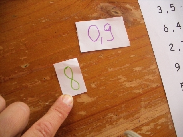 On construit le 8,9 en posant le 8 sur le 0,9.
