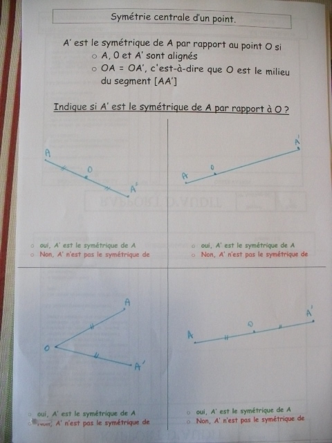 Fiches "symétrie centrale d'un point, sans quadrillage - avec un compas."