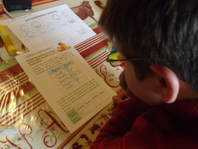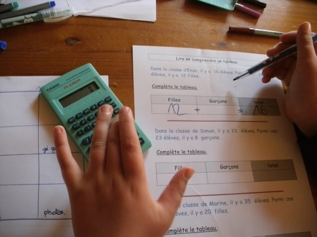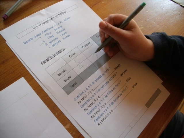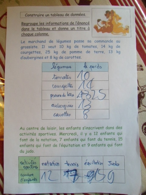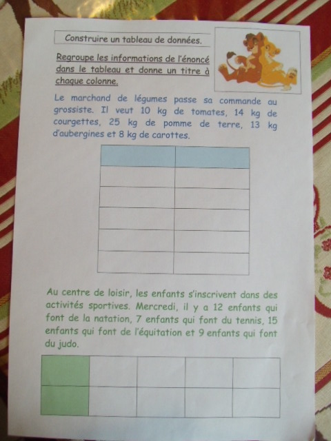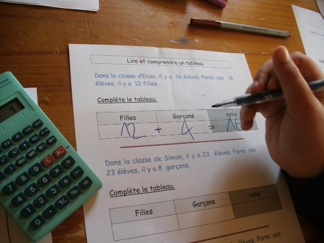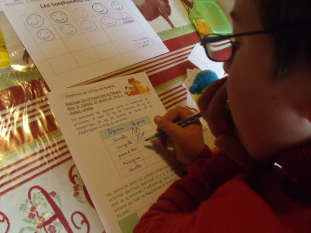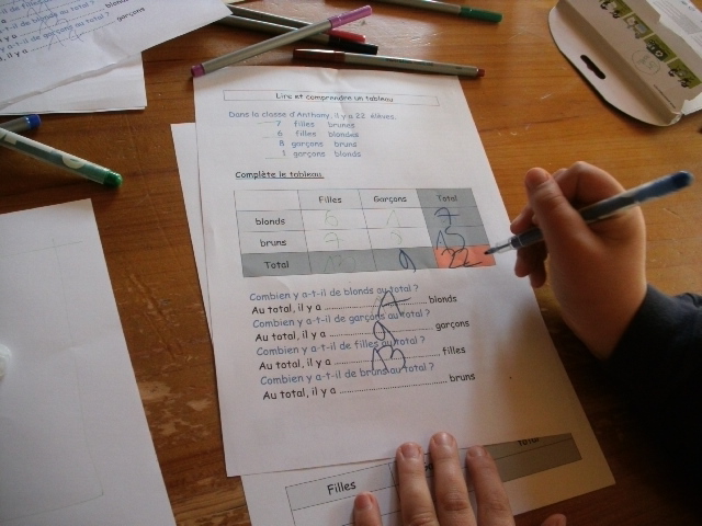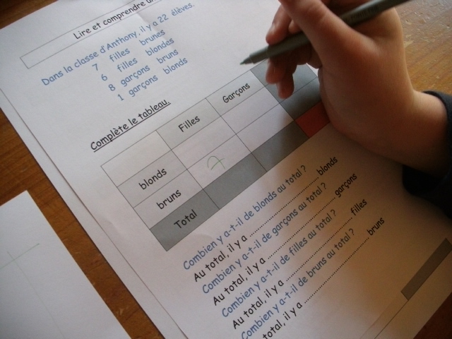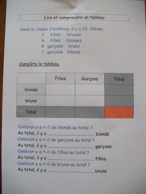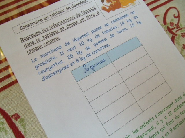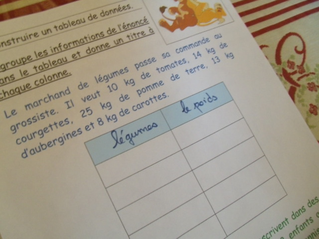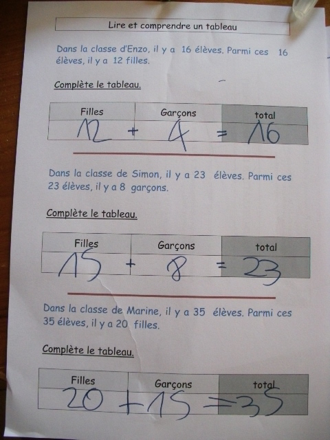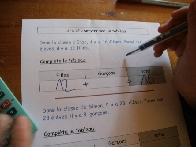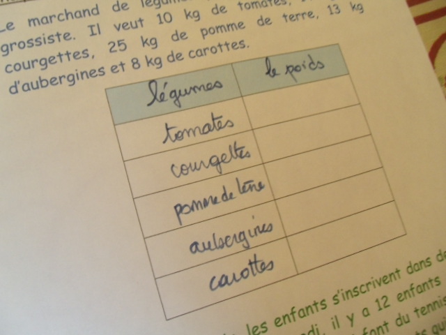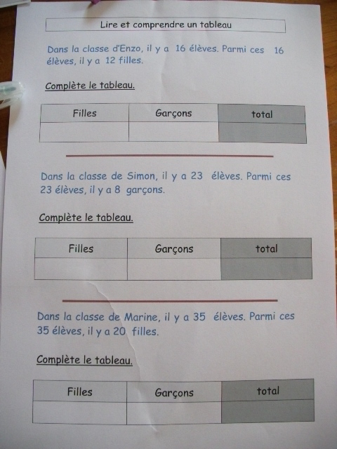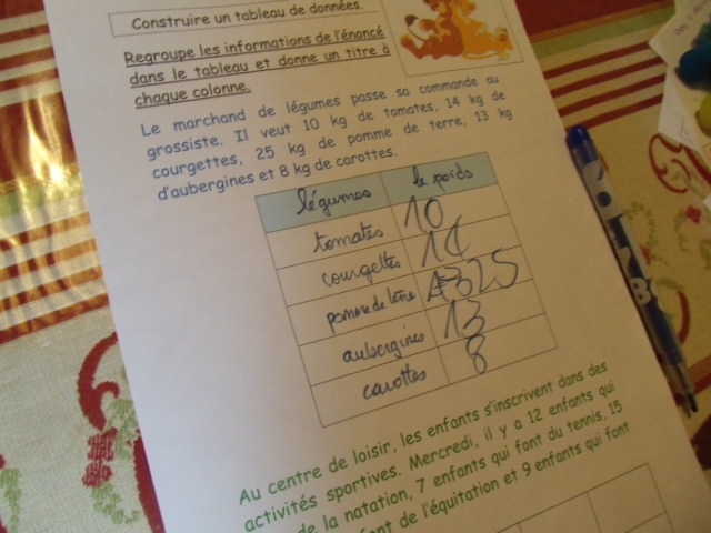étape. A partir de l'énoncé, notre fils doit compléter le tableau, en