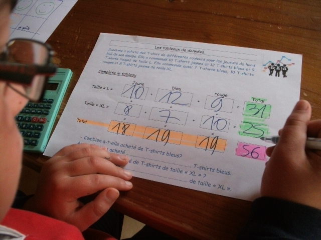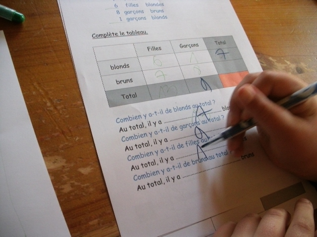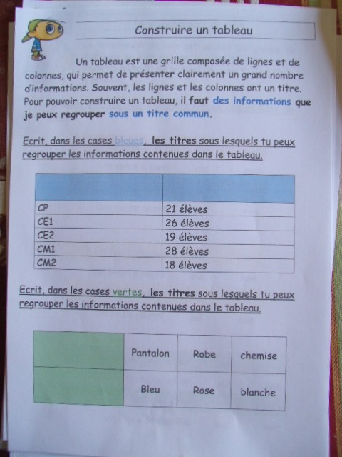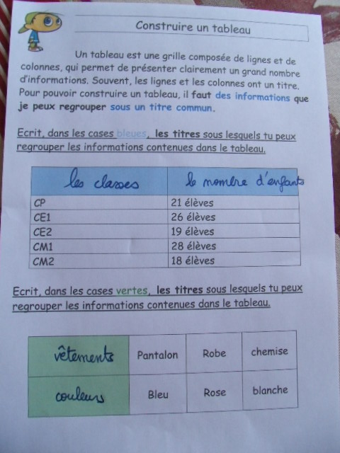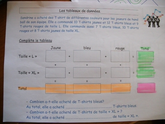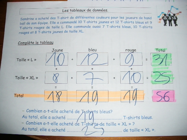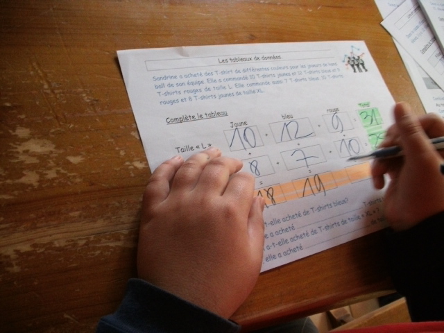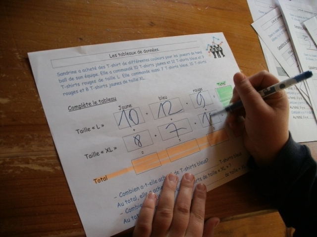 sixième, on demande aussi aux enfants de compléter un tableau, en