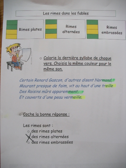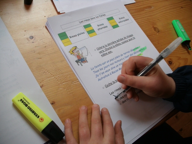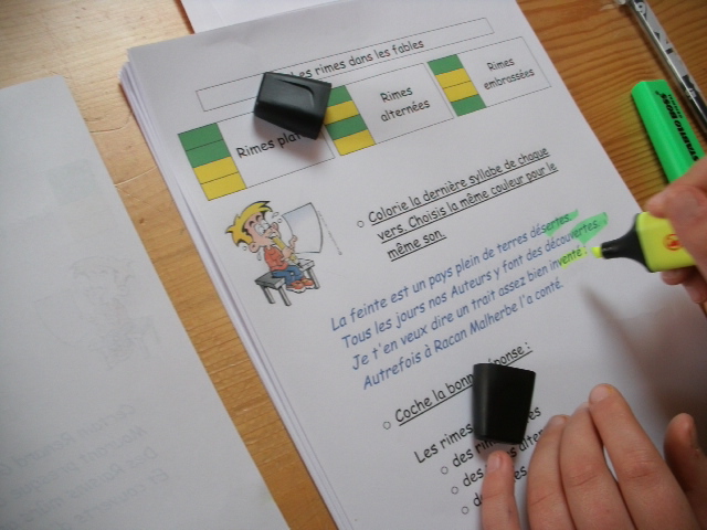 aussi. Sinon, on colorie la rime qui vient en jaune. Ensuite, on
