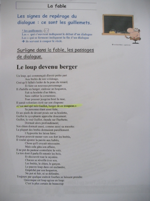 dialogue dans une fable, il faut repérer les guillemets. Le petit roi