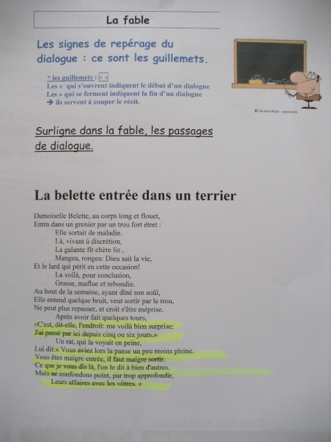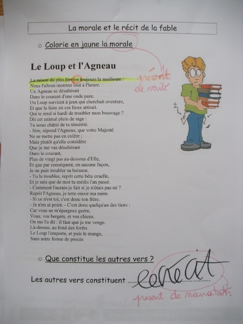 L'idée est de permettre à notre fils d'apprendre la leçon proposé par la prof de français.