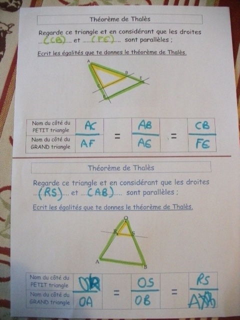 Fiches "égalités du théorème de Thalès""