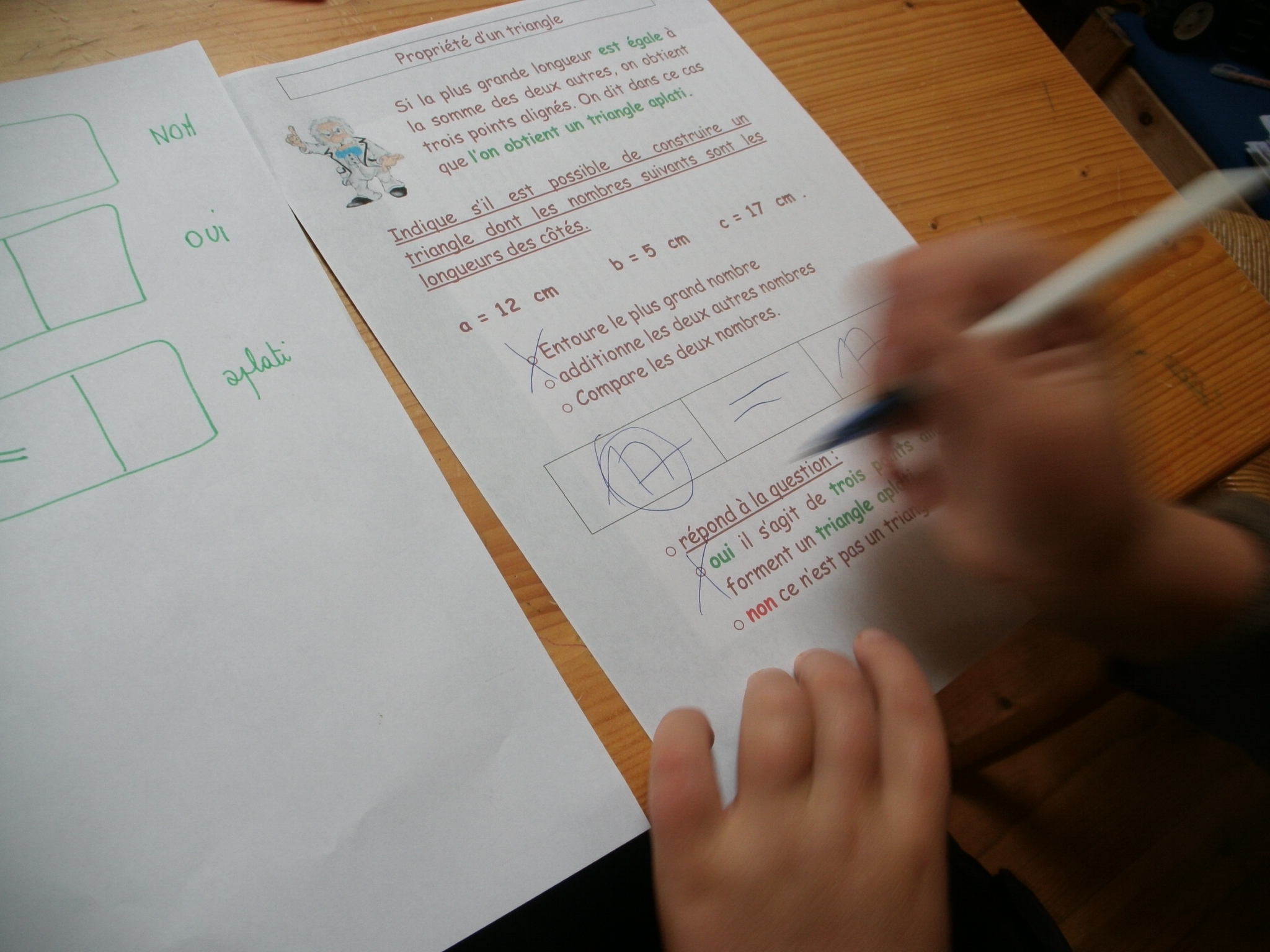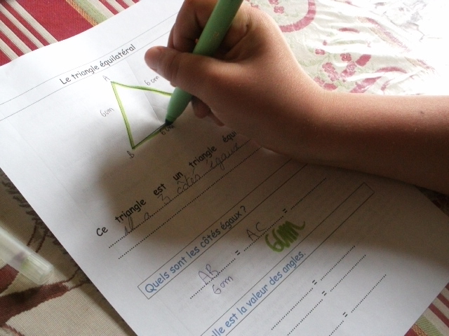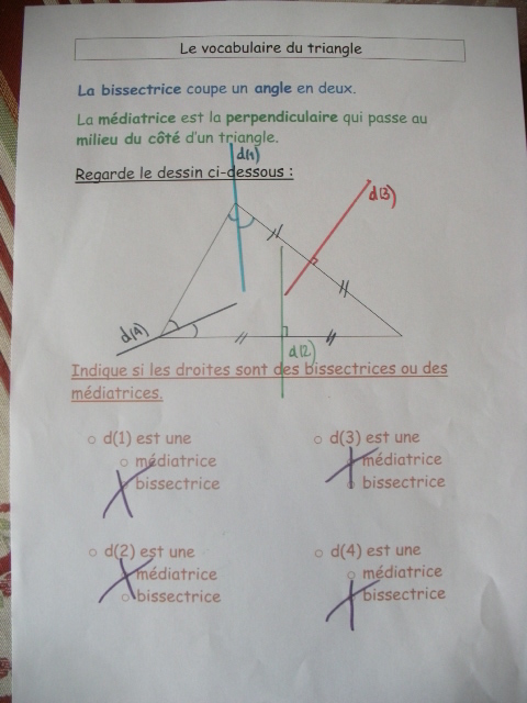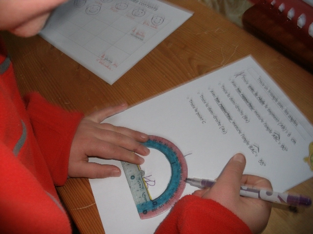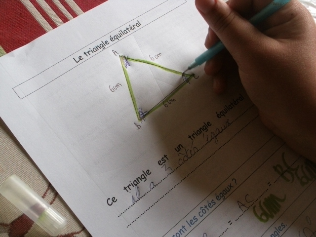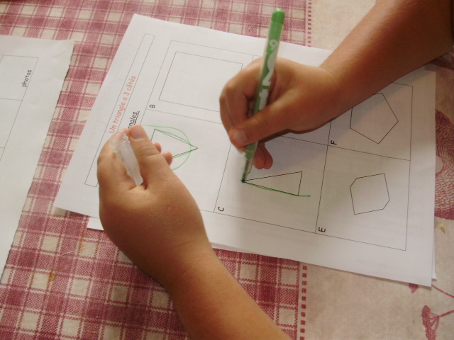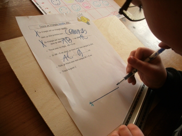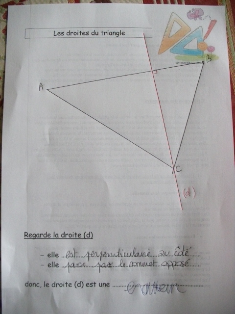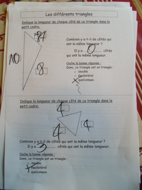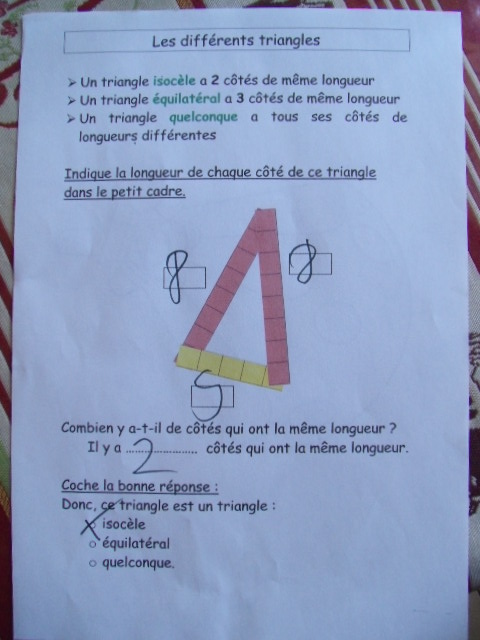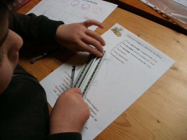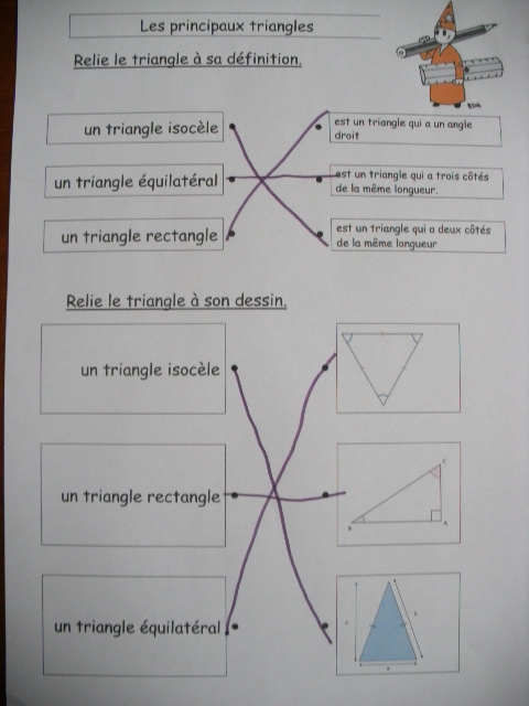 Ce travail permet d'allier deux notions précedemment travaillées : la reconnaissance du triangle et celle de l'angle droit.