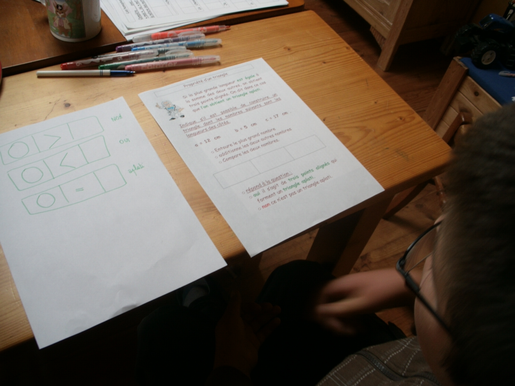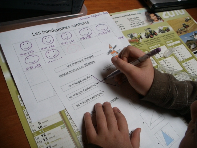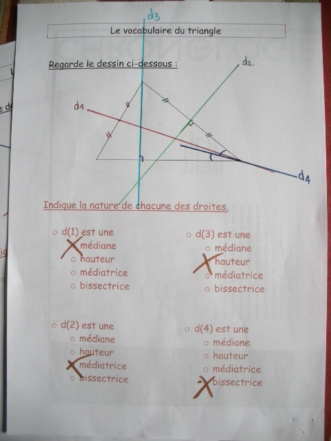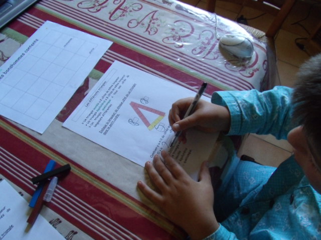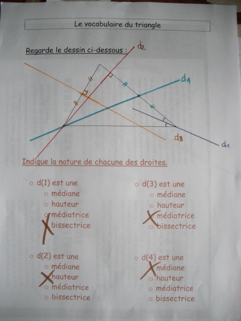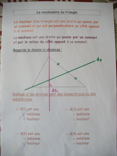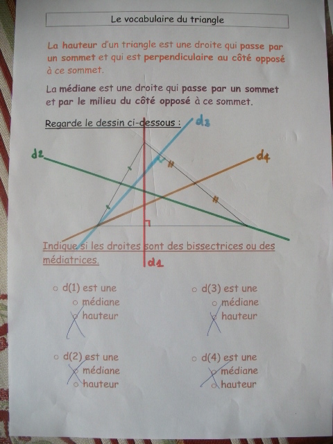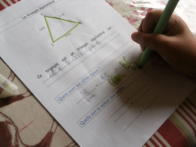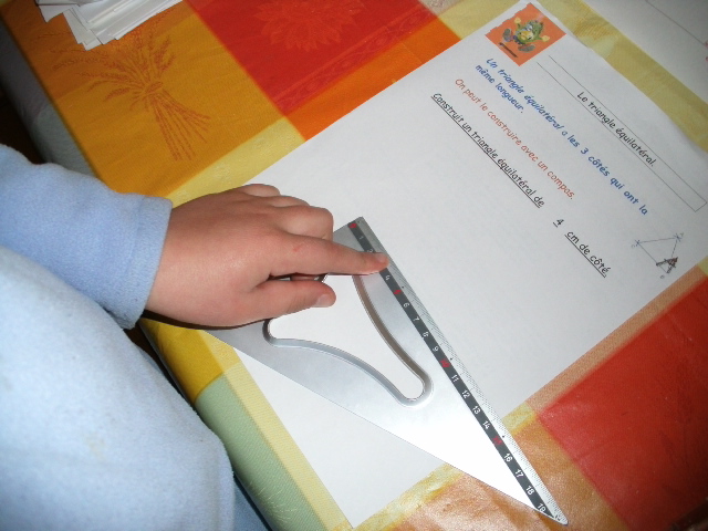 Ce travail permet d'allier deux notions précedemment travaillées : la reconnaissance du triangle et celle de l'angle droit.