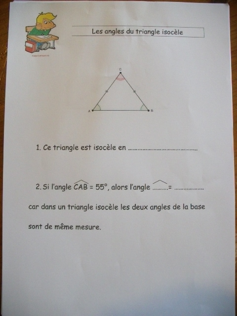 doit savoir que les deux angles de la base d'un triangle isocèle sont