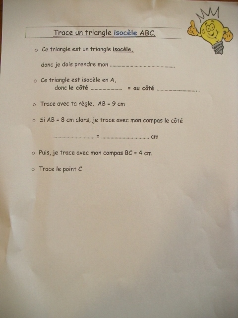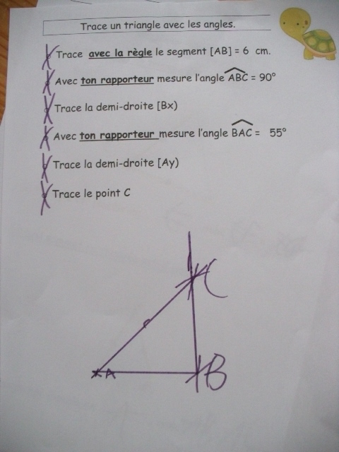 demandé, par exemple, de tracer un triangle rectangle en A. Dans ce