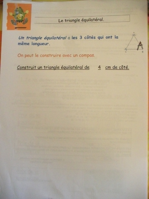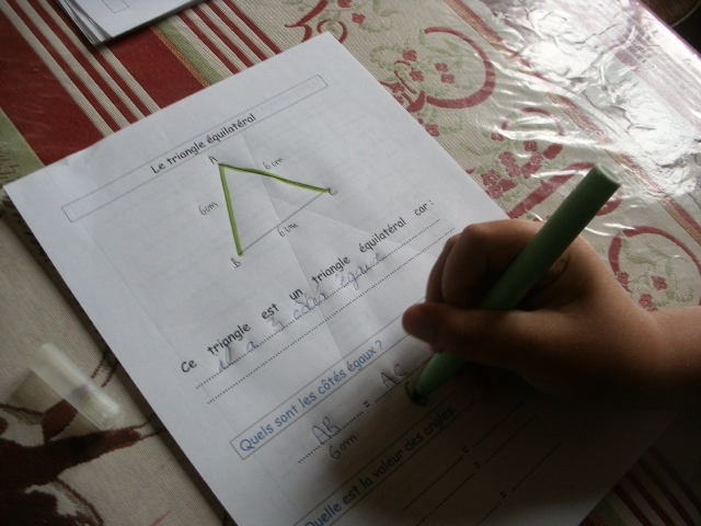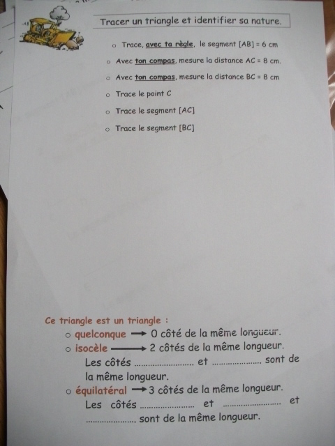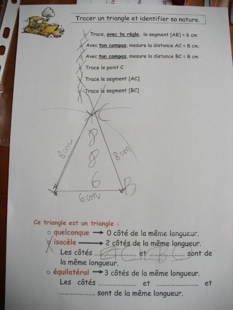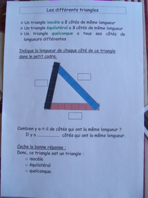 fiches ci-dessous, on travaille cette réalisation de triangle, mais