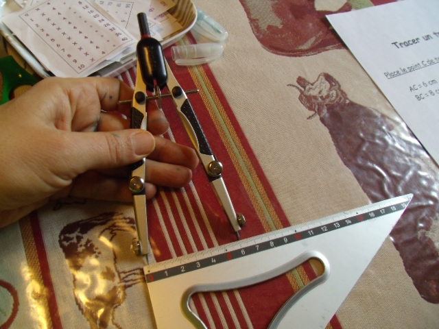 le troisième 10 cm. Pour le construire, il me faut un compas. Sur les