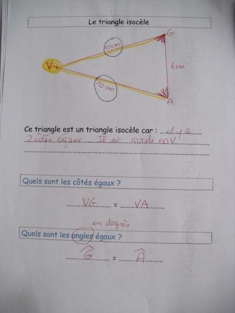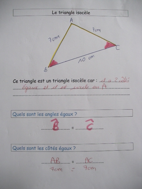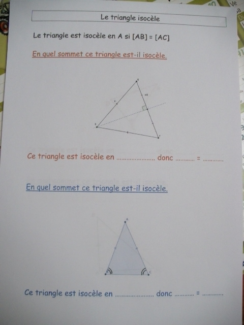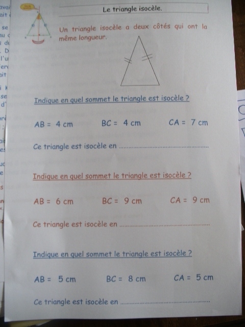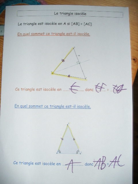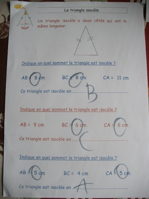 de sixième, pour reconnaître en quel sommet un triangle est isocèle et