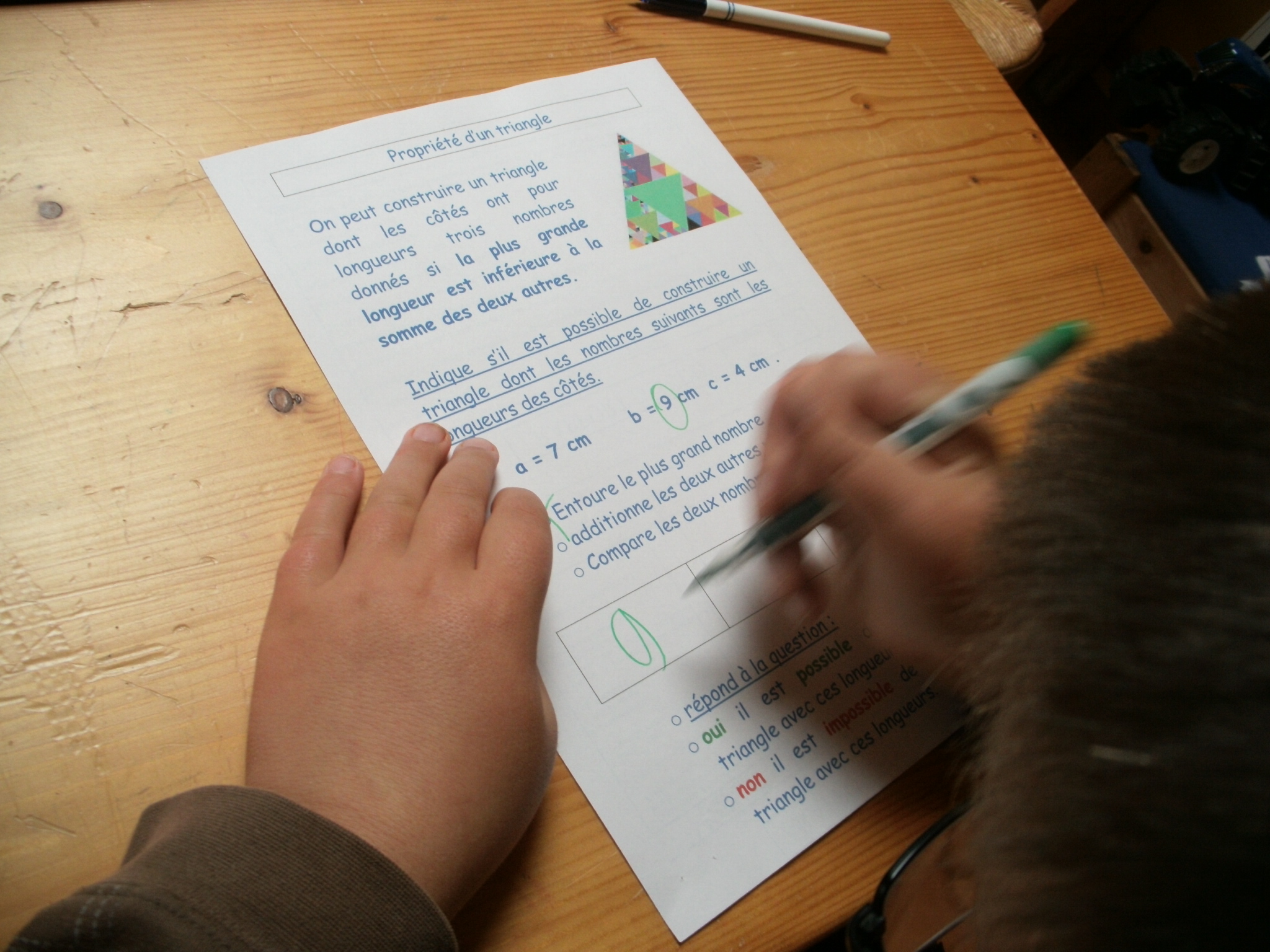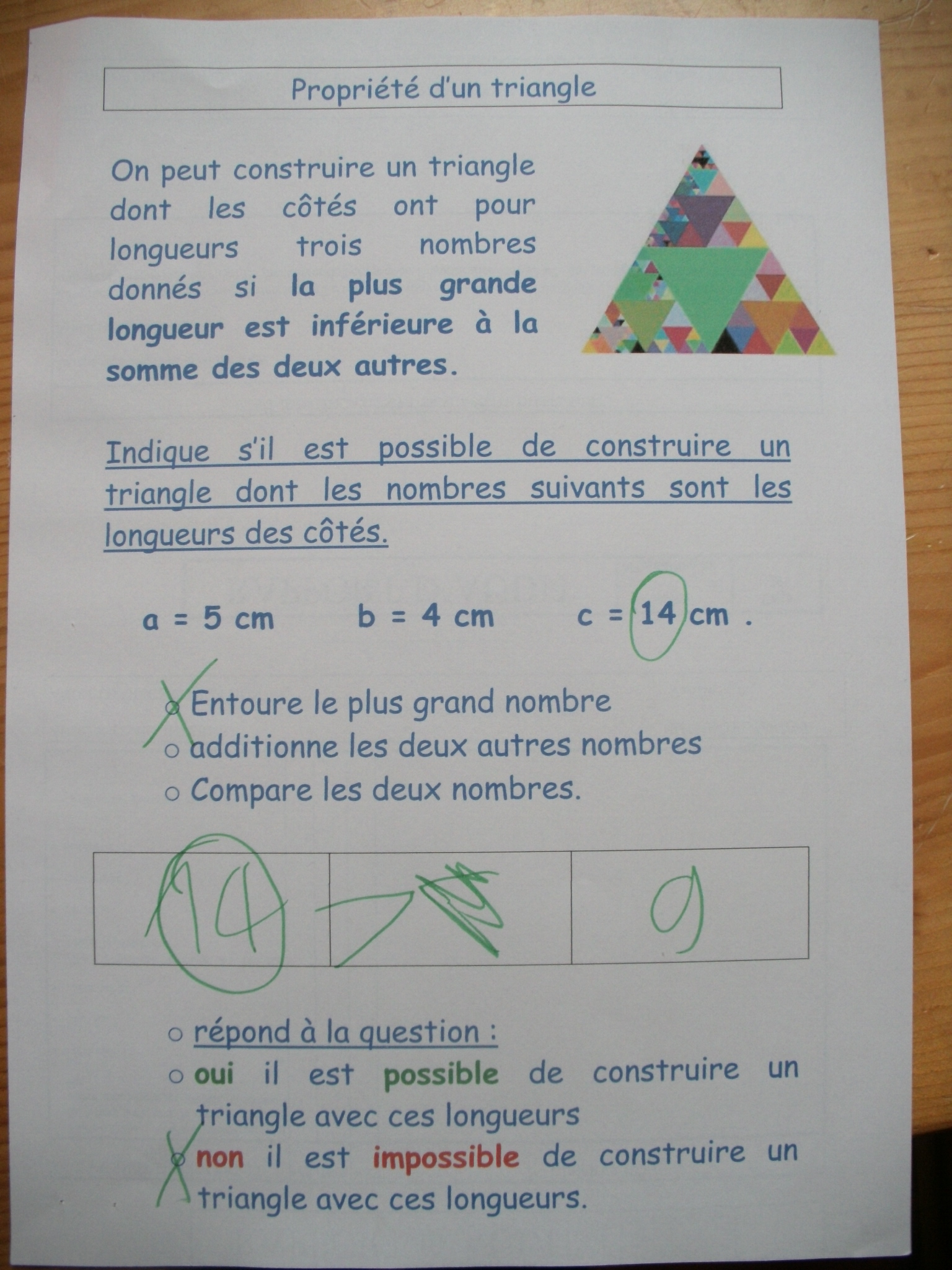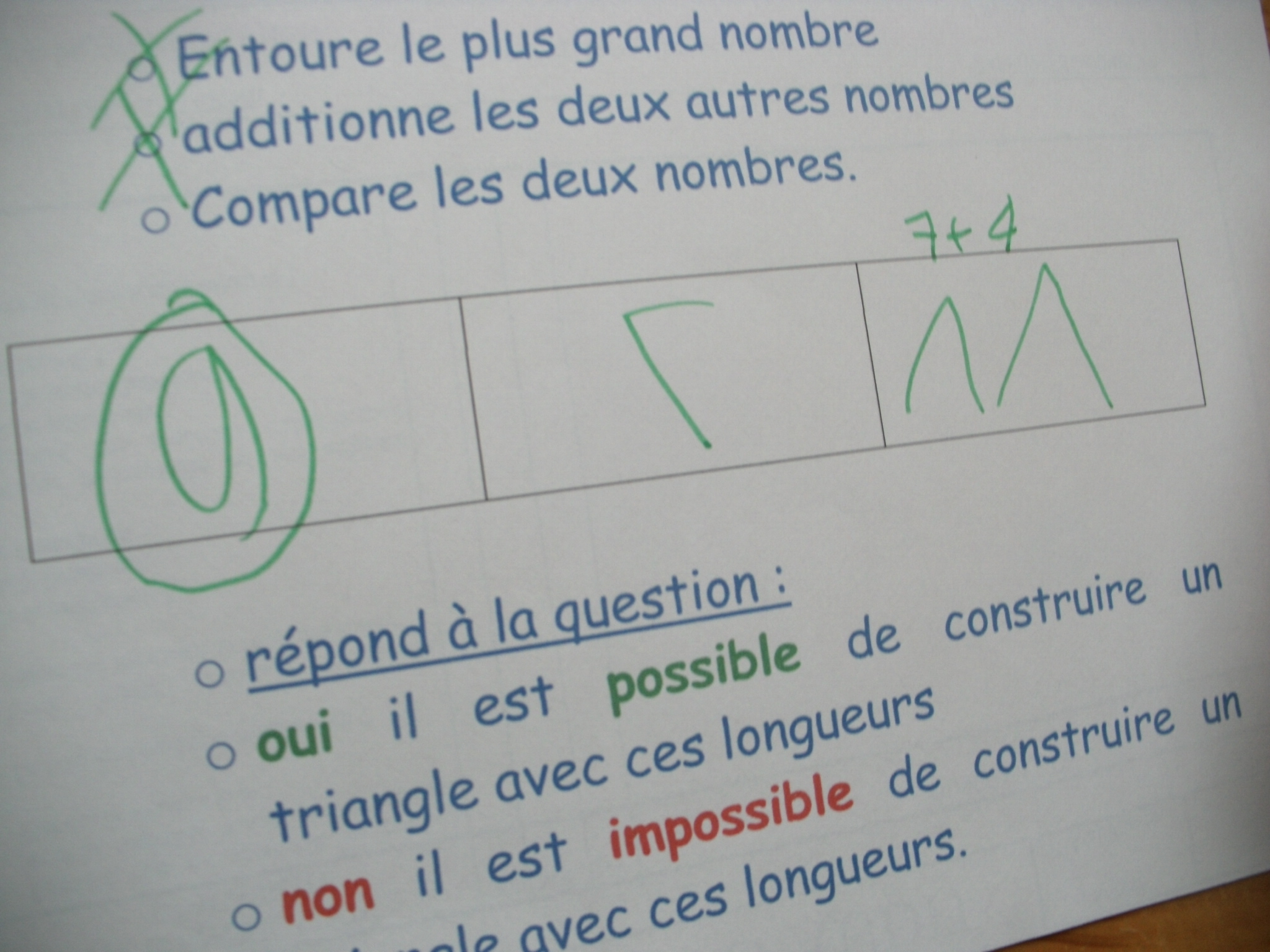 Si le nombre entouré est plus grand que la somme des deux autres, alors il est impossible de créer un triangle.