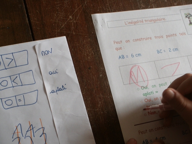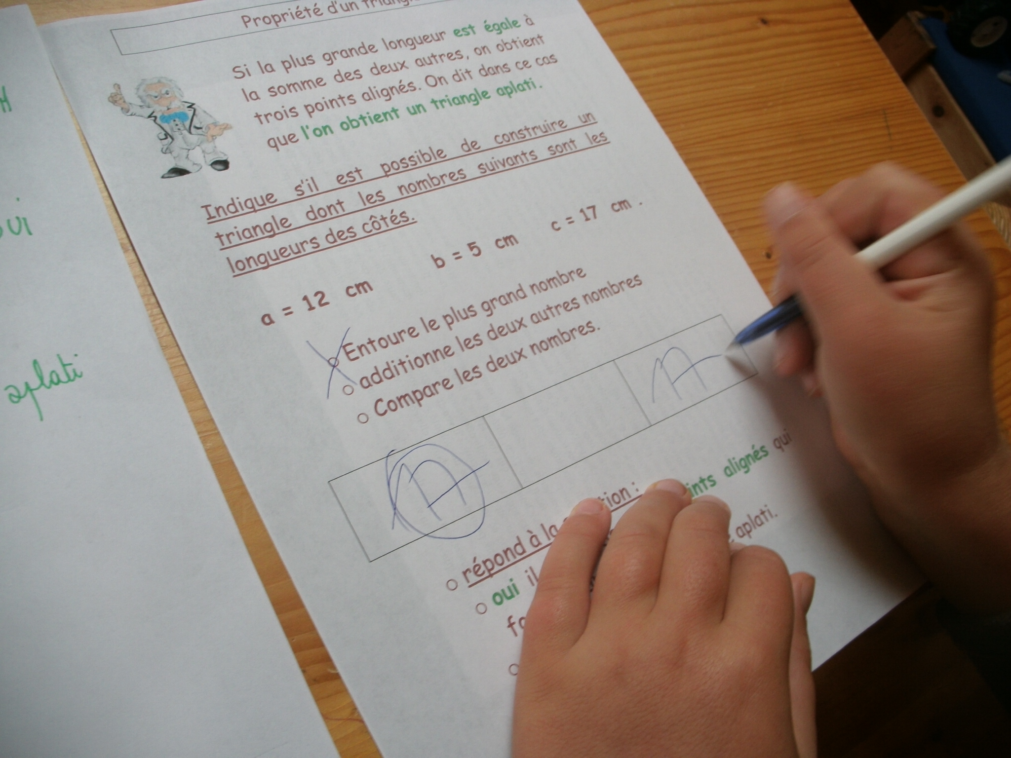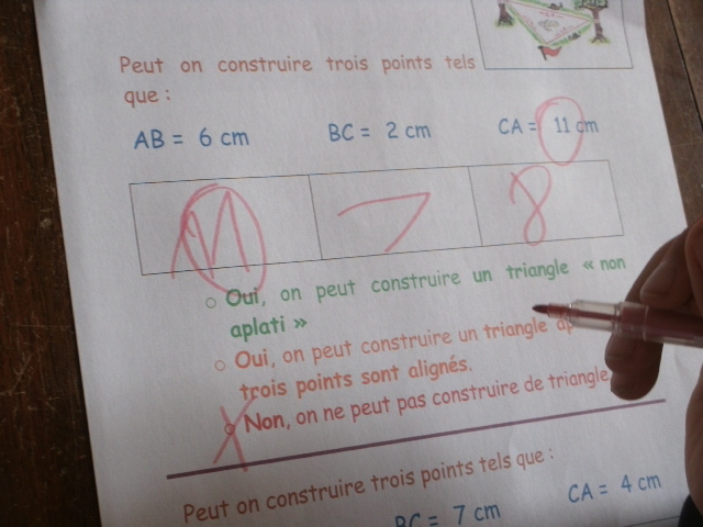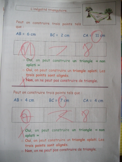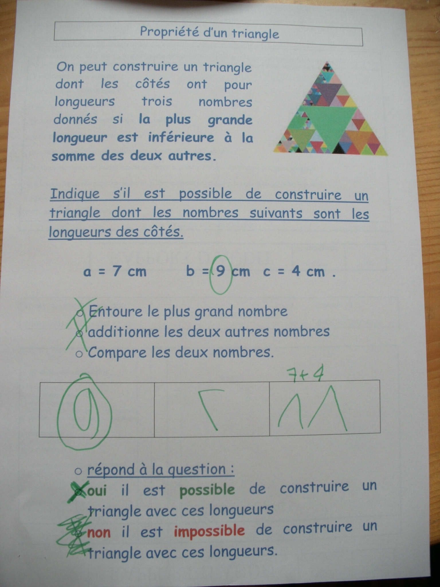 Si le nombre entouré est plus grand que la somme des deux autres, alors il est impossible de créer un triangle.