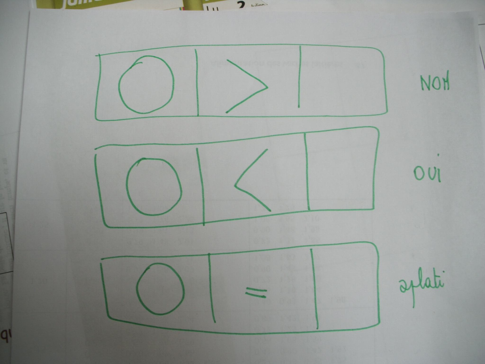 Je propose ce mémo pour aider l'enfant. Le cercle symbolise le nombre entouré car c'est la plus grande des trois longueurs.