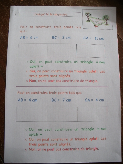 pouvoir créer un triangle à partir de trois longueurs, il faut que la