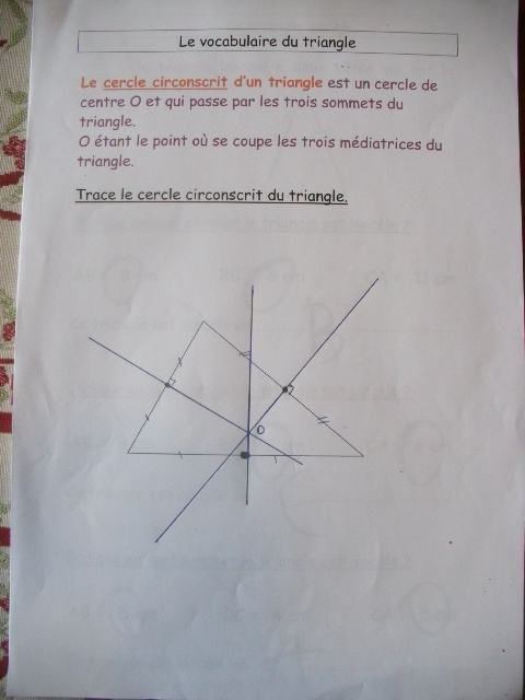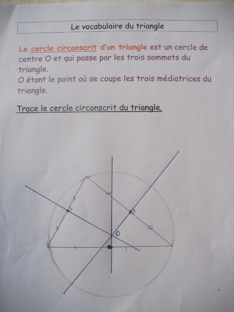 notion abordée en classe de cinquième : le cercle circonscrit à pour
