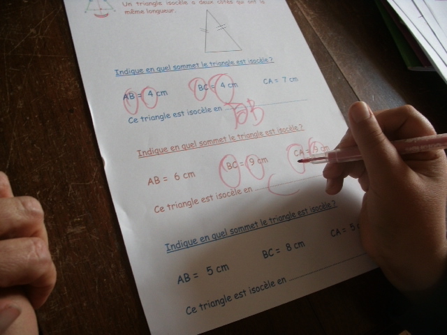 Ainsi, il identifie facilement en quel sommet le triangle est isocèle.