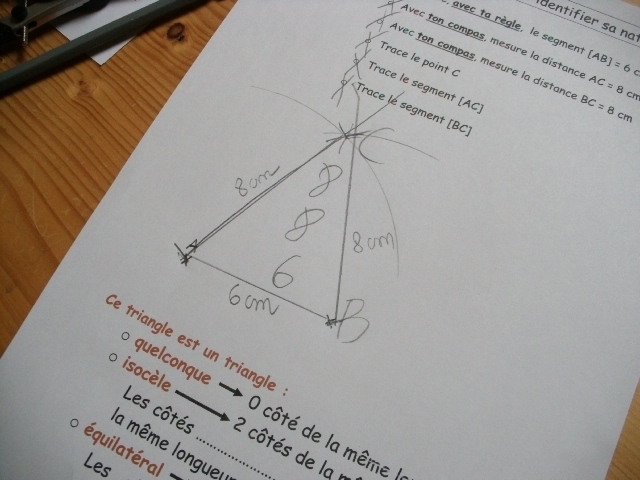On en profite pour vérifier qu'il sait bien nommer les deux côtés qui sont de même longueur.