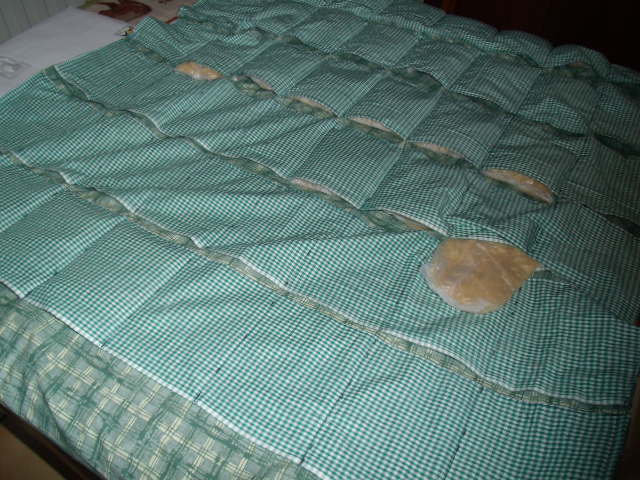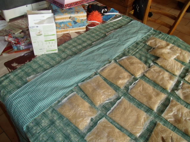Pour bien maintenir les sacs de riz, j'ai fait aussi des coutures